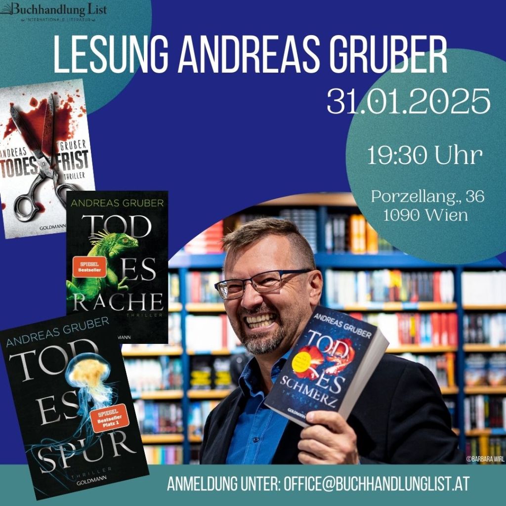 Am 31. Jänner 2025 eröffnen wir die Veranstaltungssaison in der Buchhandlung mit Andreas Gruber. Er liest aus seinem neuen Thriller „Todesspur“.