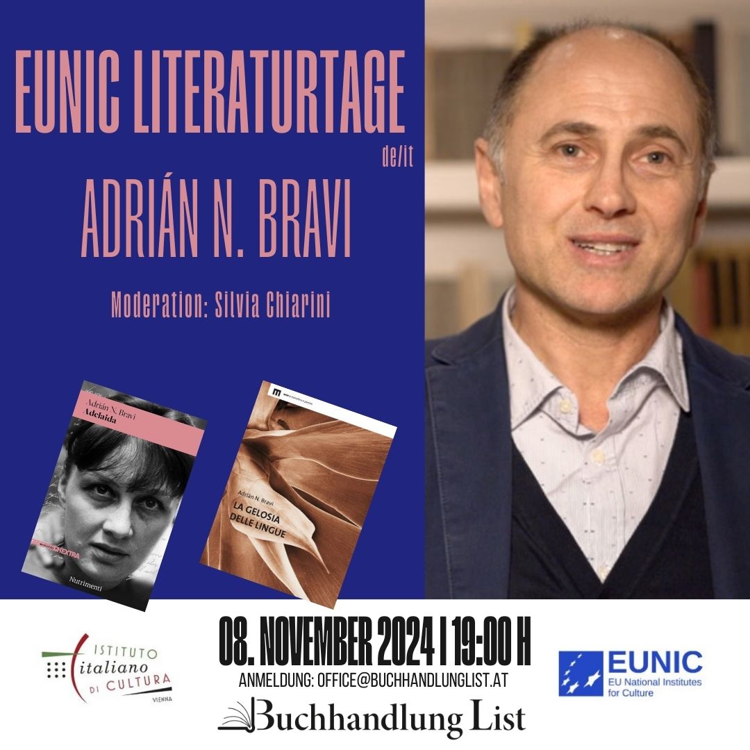 Adrián N. Bravi wurde in einem anderen Land geboren als dem, in dem er heute lebt und arbeitet. Er hat sich entschieden, in der Sprache seiner Wahlheimat, dem Italienischen, zu schreiben. Welche Auswirkungen hat diese Entscheidung auf das Leben und die Arbeit eines Schriftstellers? Wie beeinflusst sie den Inhalt und den Stil seiner Werke? Der Autor selbst wird anhand seines Essays La gelosia delle lingue (EUM) und seines jüngsten Buches Adelaida (Nutrimenti) Denkanstöße zu diesen Fragen geben. //