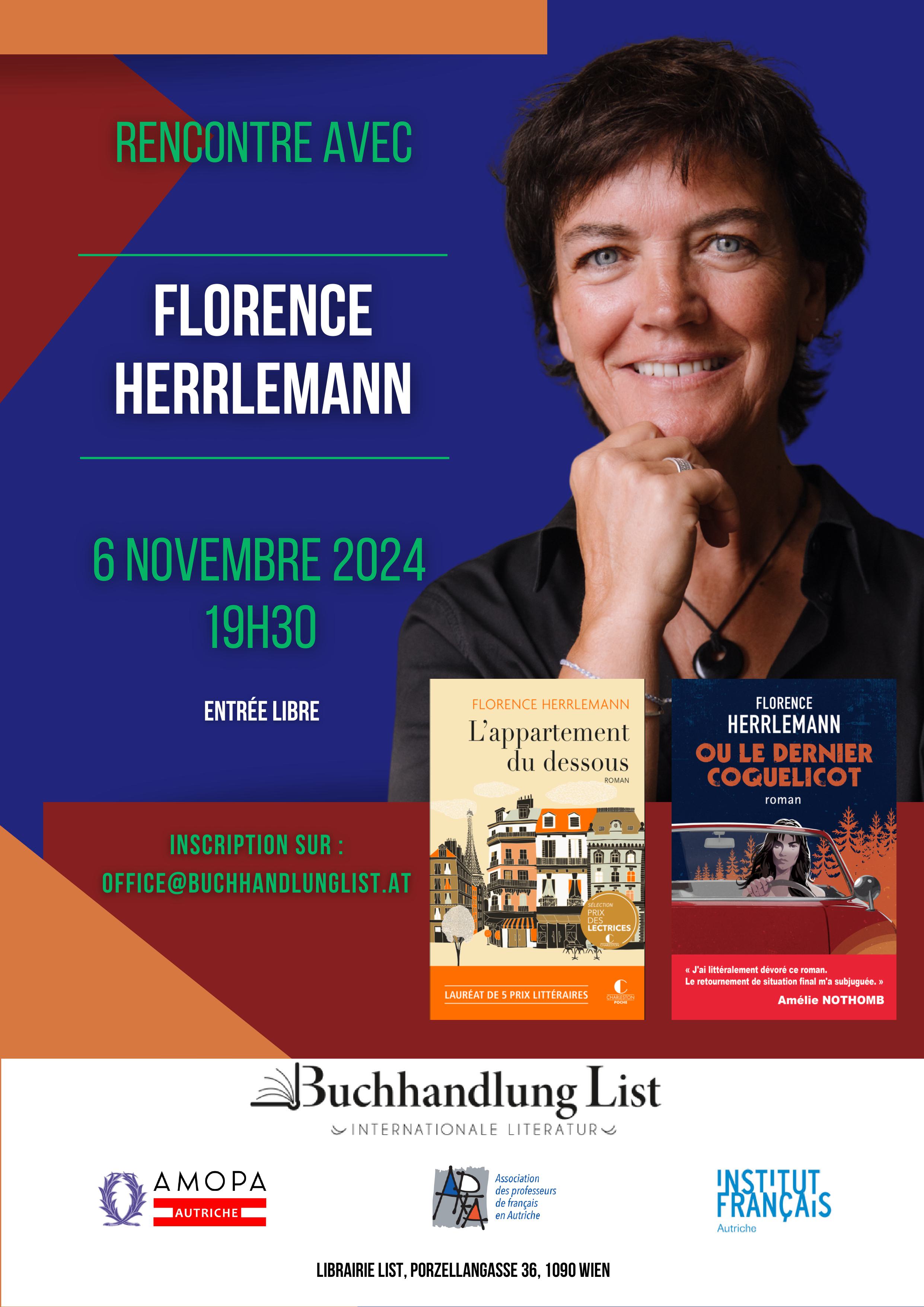 L’appartement du dessous, deuxième roman de Florence Herrlemann, est lauréat de cinq prix littéraires en France et en Belgique.