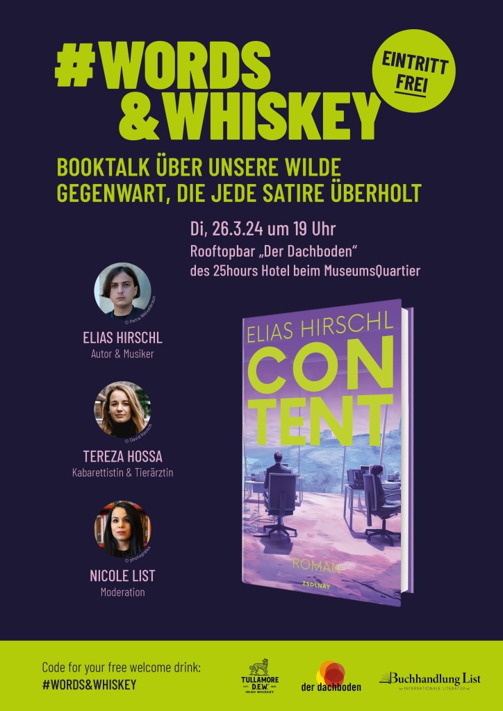 Der Musiker und Autor Elias Hirschl ist ein Meister darin, humorige, aber durchaus schmerzhafte Satire zu entwerfen, die sich binnen kürzester Zeit in Realität verwandelt. Das hat er zuletzt sehr eindrücklich mit seinem Roman „Salonfähig“ – einer Parodie über Sebastian Kurz vor dessen Abgang – bewiesen. Die Welt, die Hirschl in seinem neuen Roman „Content“ entwirft, ist eine Spaßwelt voller Eskapismus. Die Protagonistin macht den ganzen Arbeitstag nichts anderes, als Listicles (Online-Content mit möglichst hoher Klickrate) zu erstellen. Von den 10 schlechtesten Burger-Läden der Welt, wo du zum Sterben hingehen solltest, über die 11 Gründe, warum die Fruchtfliegen immer noch in deiner Küche sind. Das ist alles an „Nachrichten“, die die Menschen in der Romanwelt noch konsumieren.